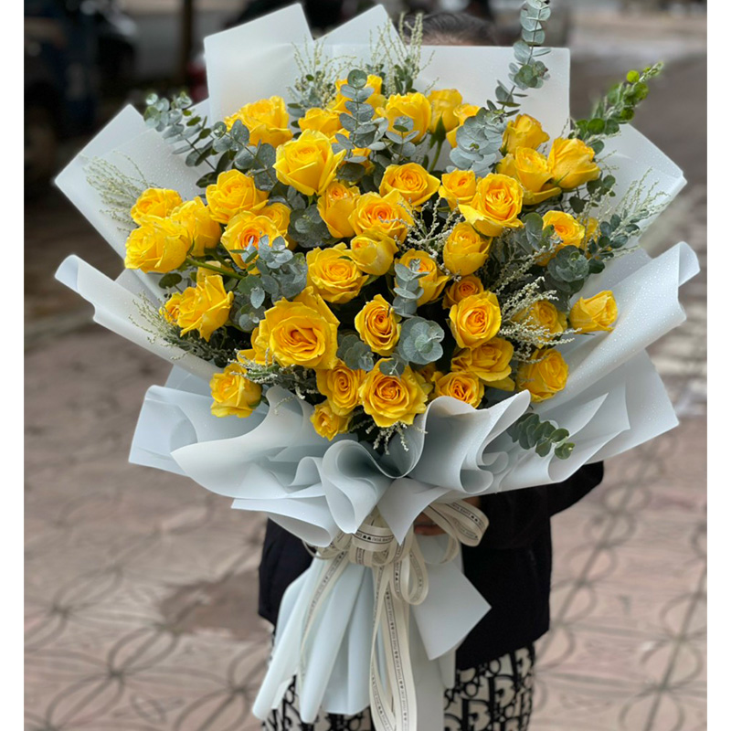 Straight from the garden of Eden, these Beautiful Yellow Roses are arranged into a classic bouquet to share your feelings and best wishes for a special occasion. The subtle tones of grey wraping make it an elegant offering no recipient would ever want to refuse.