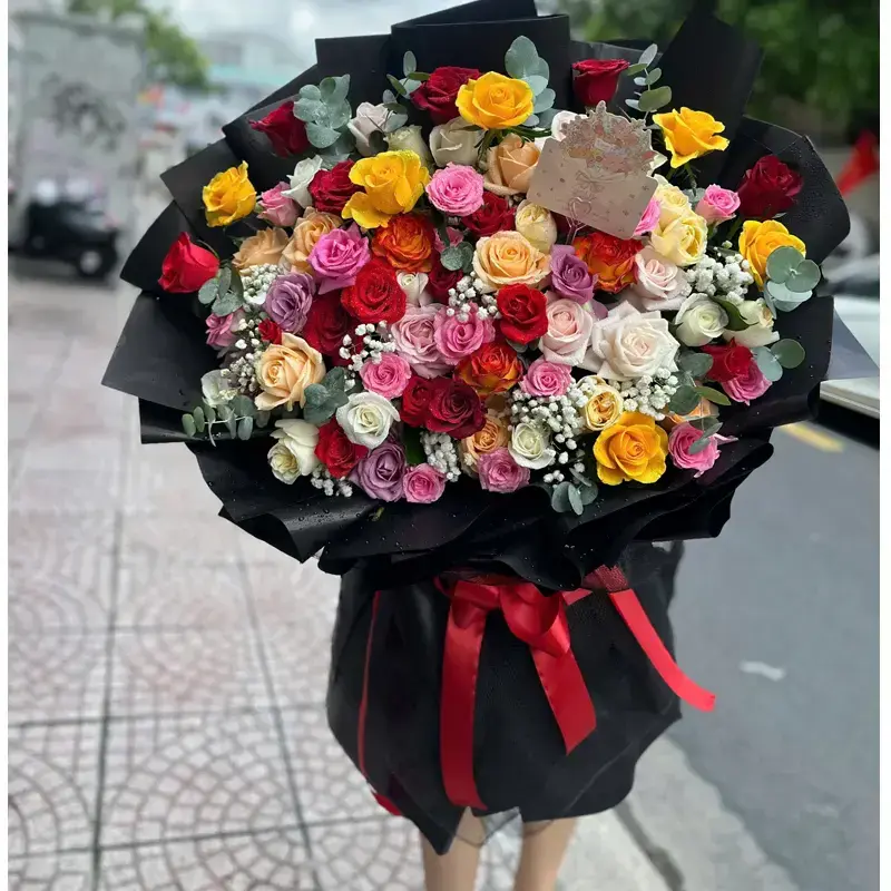 Celebrate love, joy, and elegance with this stunning bouquet of 80 roses in a vibrant mix of colors. Each rose is carefully selected to create a masterpiece that speaks of romance, gratitude, and beauty. Perfect for anniversaries, birthdays, or any special occasion where words are not enough, this bouquet delivers a heartfelt message in the most timeless way.