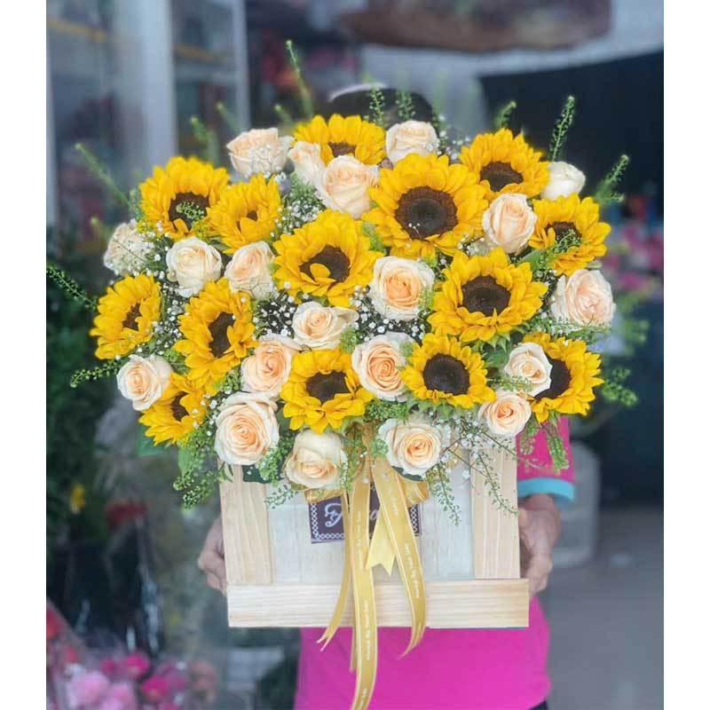 Bask in the sunshine with this bountiful mix of Sunflowers, This bouquet definitely chase away the gloom of your loved ones.