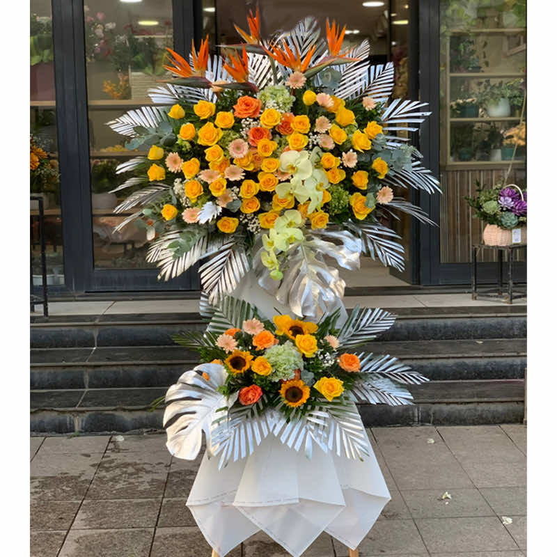 A grand opening flower arrangement is a celebratory gesture sent to commemorate the inauguration of a new business, store, or office. These flora arrangements are designed to convey best wishes and good luck, often featuring vibrant, eye-catching flowers arranged in a way that symbolizes growth, prosperity, and new beginnings.